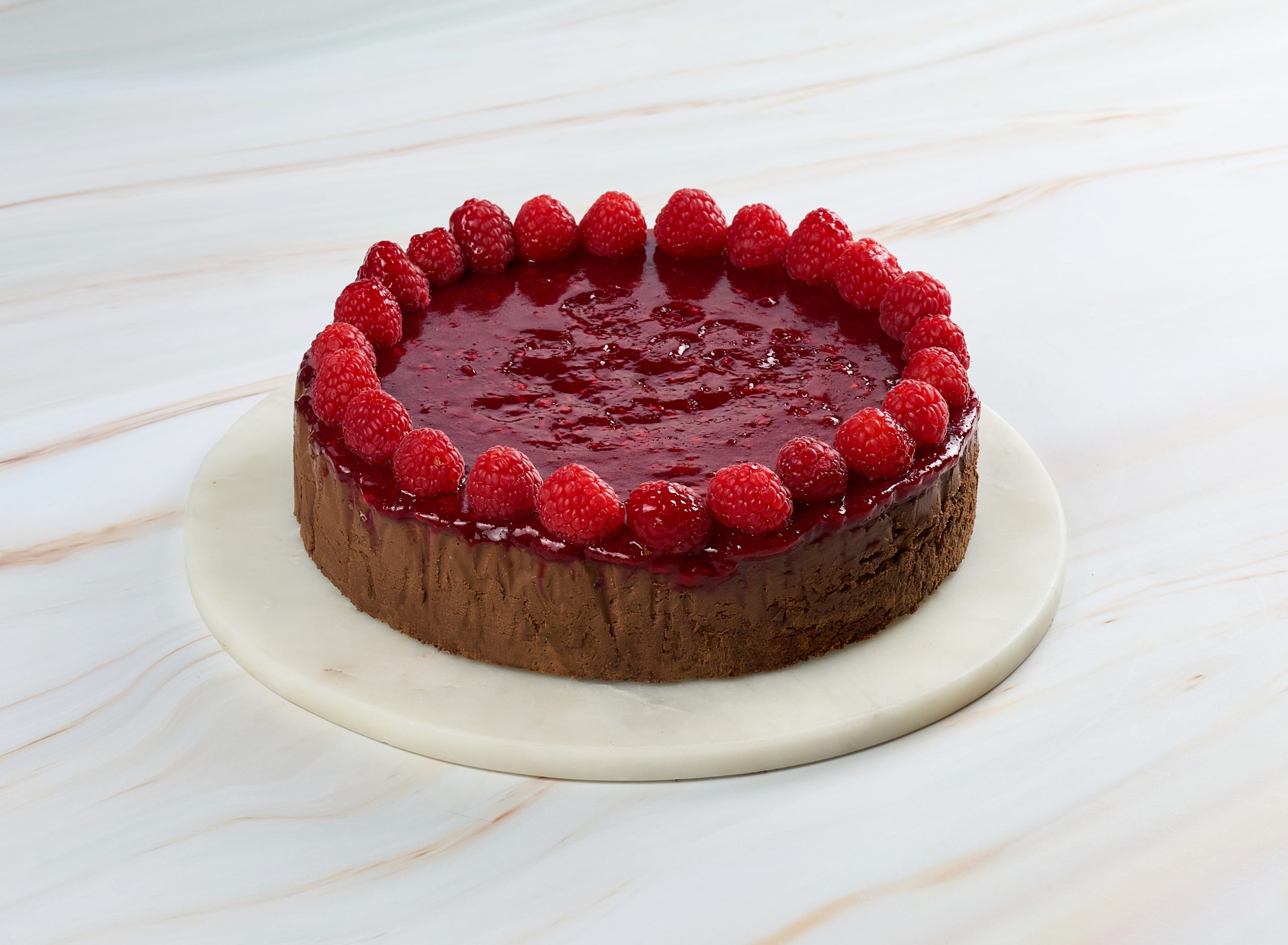 Blat ovaz, curmale, ulei cocos, unt arahide si fulgi de cocos. Ganache de ciocolată vegană fara zahăr, lapte de cocos. Jeleu de zmeură.